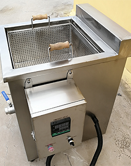 The main parts of this small scale manual batch frver machinee are made of SUS304 stainless steel. The heatingmode is high-temperature heating tube or burner. Equipped with automatic feeding system, mixing system,emission system and combustion system. Suitable for many kinds of products, like meat pie, chicken nuggetspotato chips, spring rolls, peanuts, chin chin and other snacks.