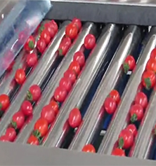 Uses a seres of rollers with diferent diameters to sort and separate the produce based on their size and shape.